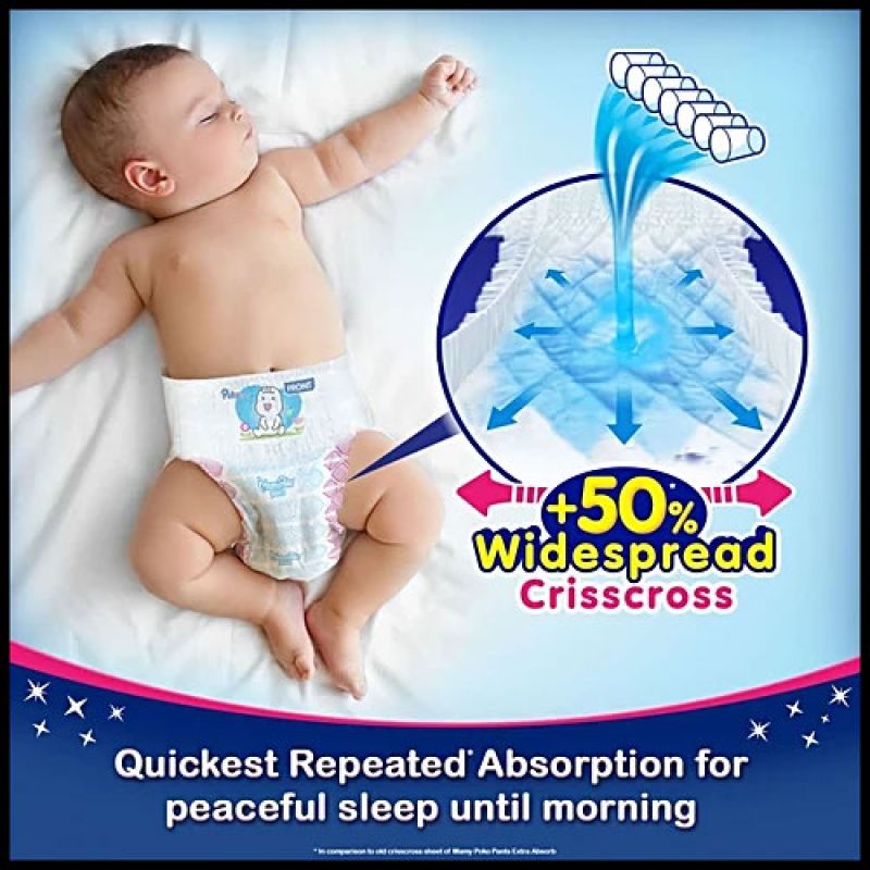 - It has a Crisscross Absorbent sheet that absorbs 7 glasses of urine & spreads it evenly