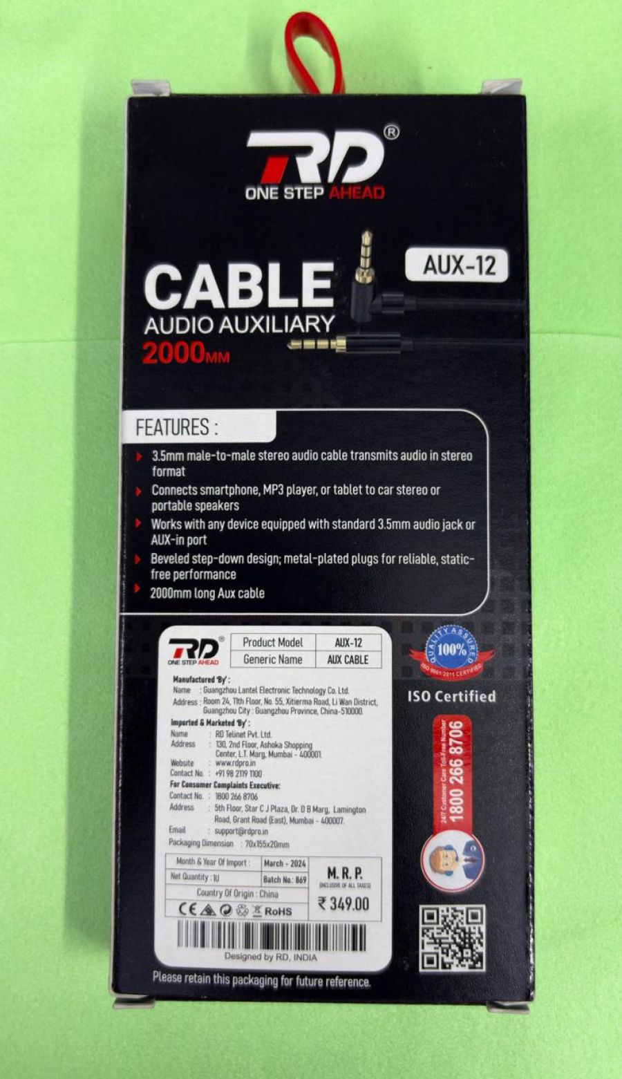 RD Aux 12 Cable 3.5mm Audio Jack