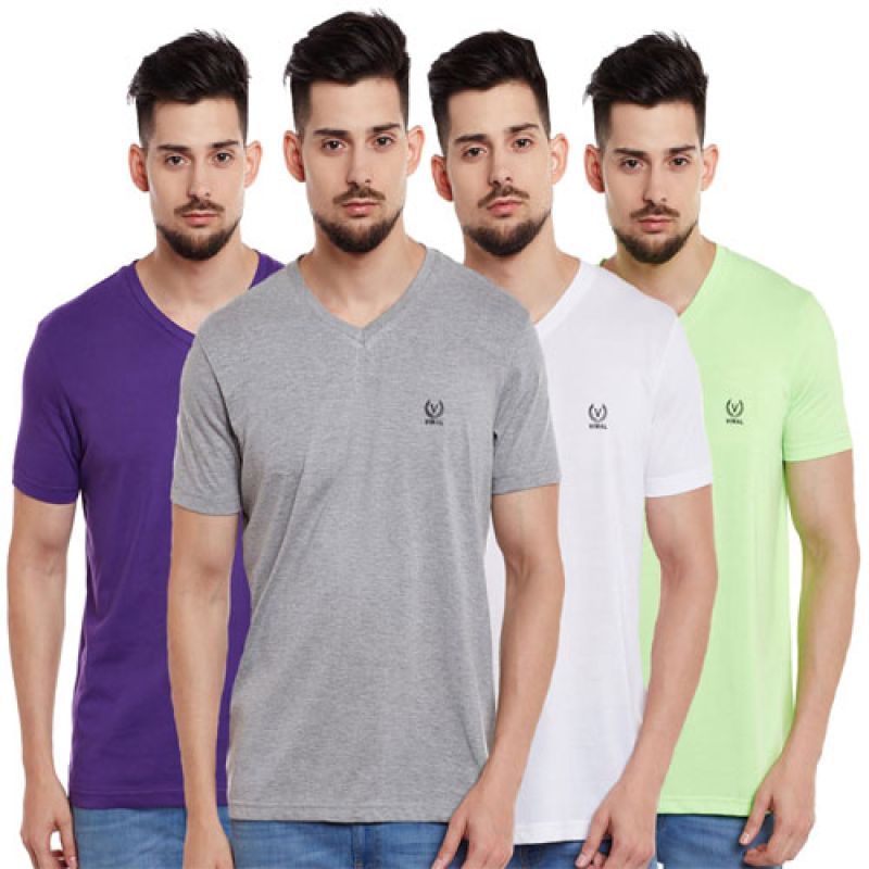 Vimal Jonney Cotton Rich V Neck T-shirts - Light Green Colour