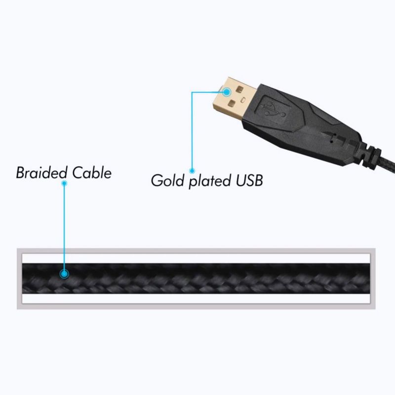 Gold Plated USB Braided Cable Multicolour LEDs/Gaming Mouse with breathing LEDs 3200 DPI