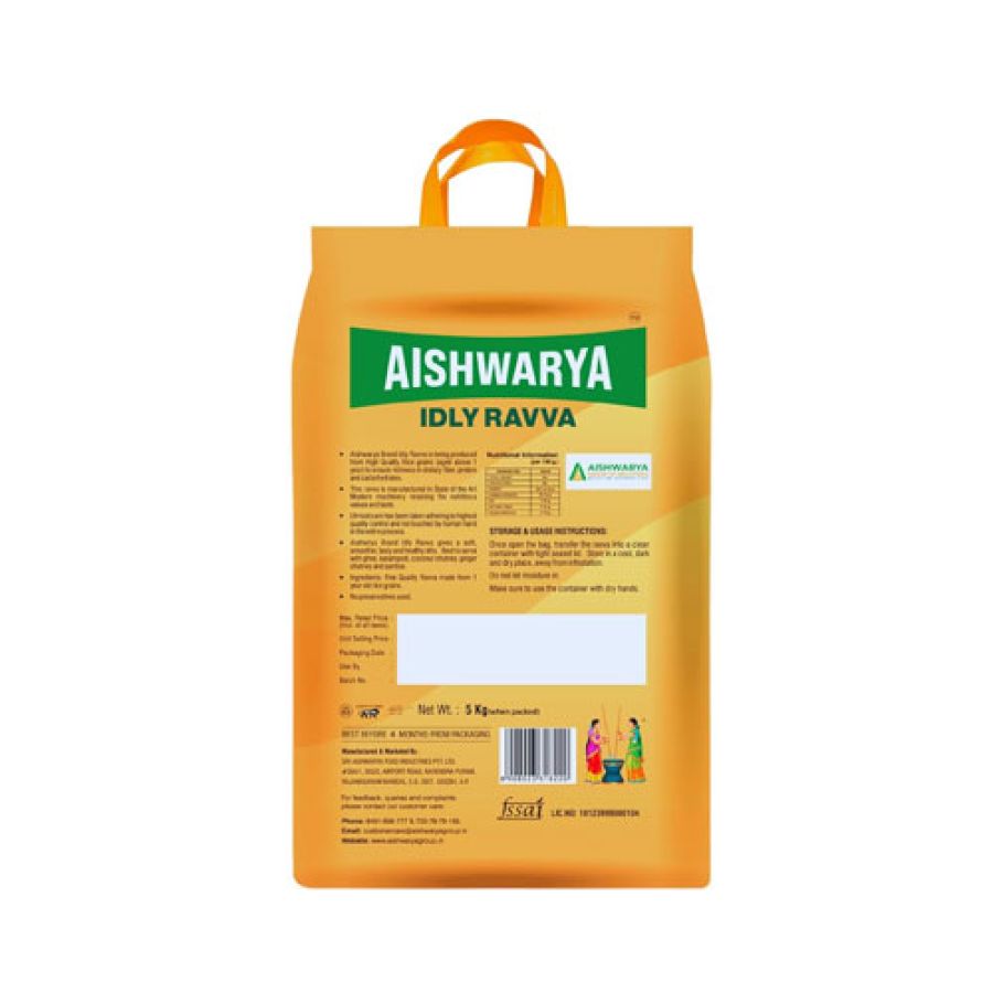 Aishwarya Idly Ravva (Small Ravva) is a finely ground product of rice, perfect for soft, smooth, and easy-to-make idlis. Its fine texture speeds up soaking and fermentation, ideal for busy kitchens. Enjoy consistently fluffy results and authentic South Indian taste with this premium-quality idly rava in every meal.