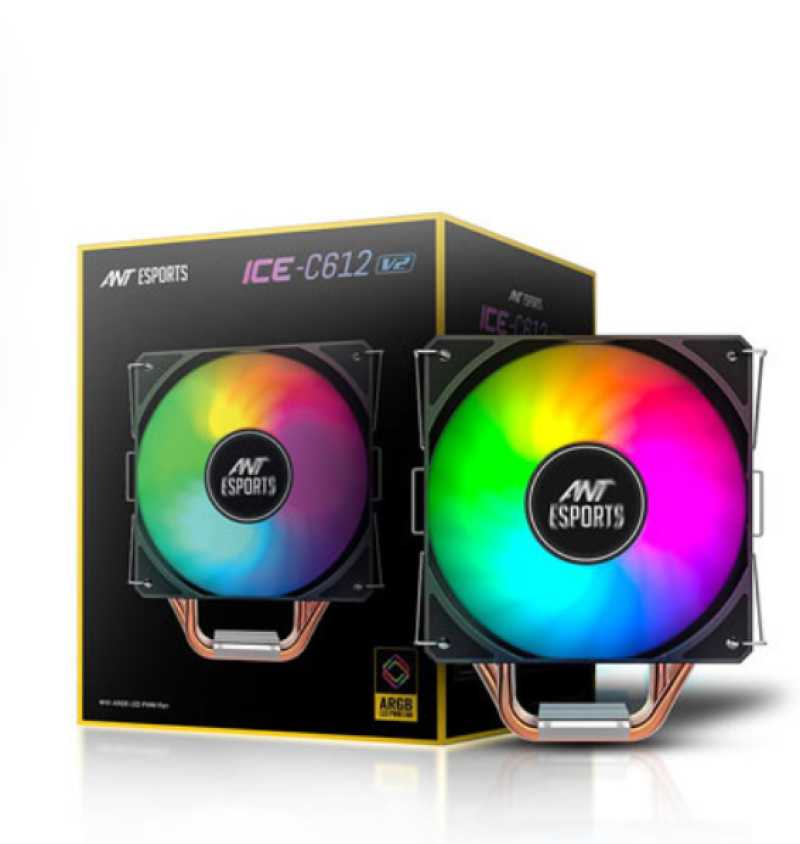 Ant Esports ICE-C612 V2 ARGB CPU Cooler| Support Intel LGA1200, LGA115X, LGA20XX, LGA1366, LGA1700 and AMD FM1, FM2, FM2+, AM2, AM2+, AM3, AM3+, AM4, AM5