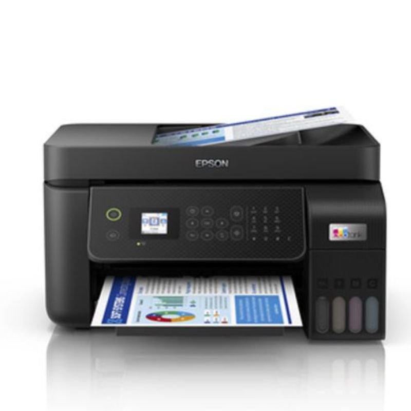 Print, Scan, Copy, Fax with ADF Compact integrated tank design High yield ink bottles Spill-free, error-free refilling Wi-Fi, Wi-Fi Direct Epson Connect Seamless setup via Epson Smart Panel Borderless printing up to 4R Powered by Epson Heat-Free Technology