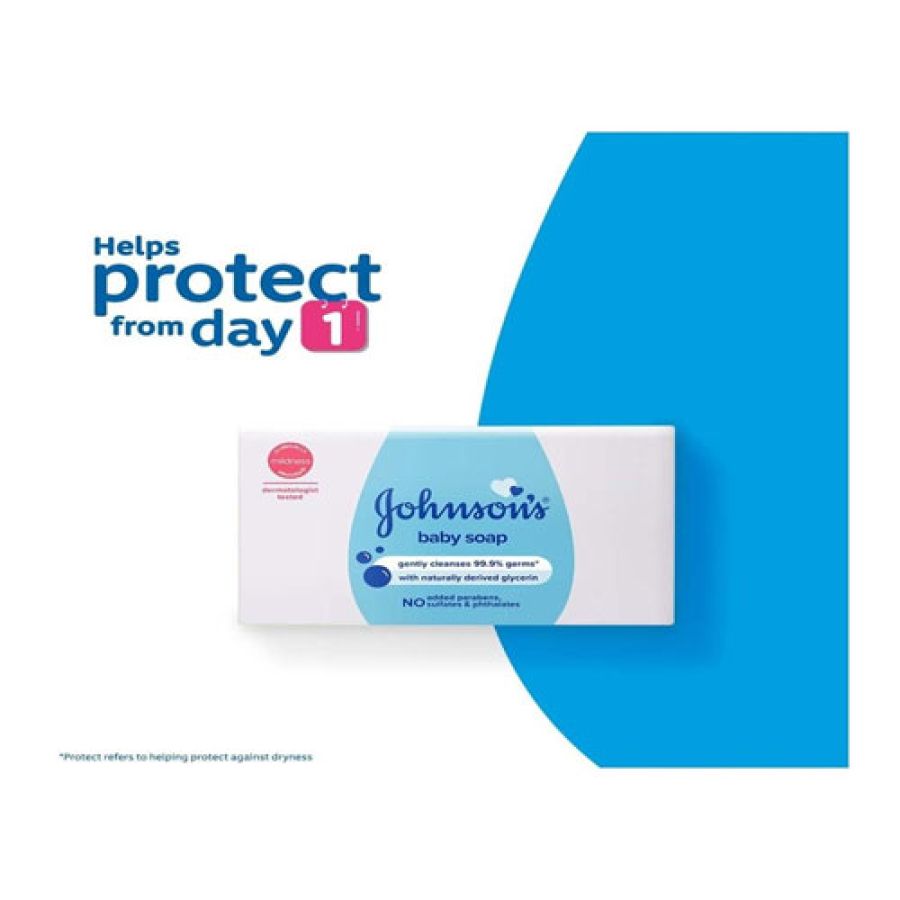 - Give your little one's skin a gentle cleanse with the Johnson's Baby Soap. Formulated with baby-safe ingredients like glycerin and vitamin E, this moisturizing baby soap gently cleanses the baby's delicate skin and protects it from germs. Also, this Johnson's Baby soap is a gentle soap and has a pH-balanced formula to protect the baby's natural skin pH.