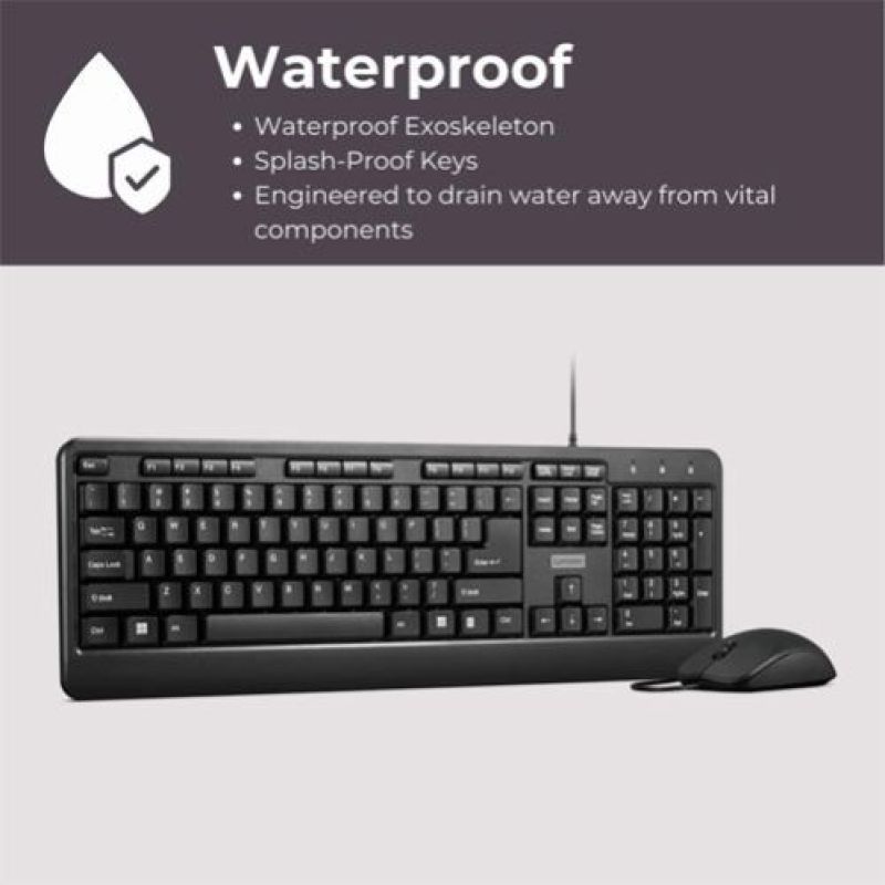 Waterproof Exoskeleton Splash Proof Keys 1600 DPI Full Size Mouse Non-Slip Scroll Wheel Adjustable Keyboard Stand 3 Yr Warranty