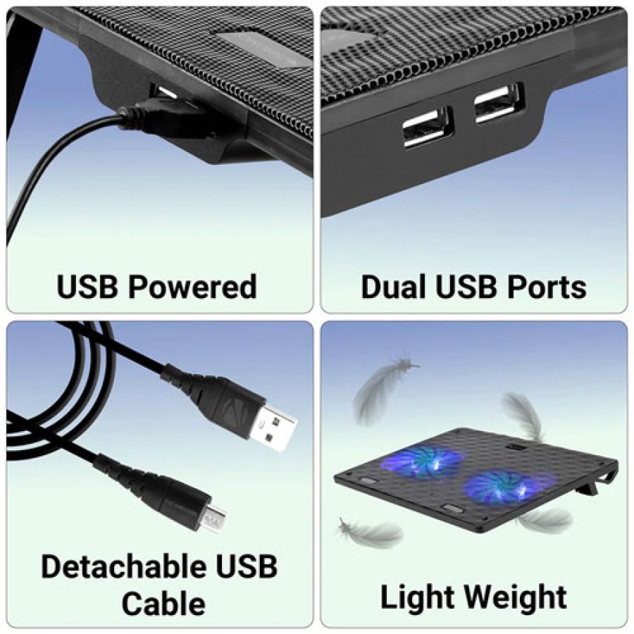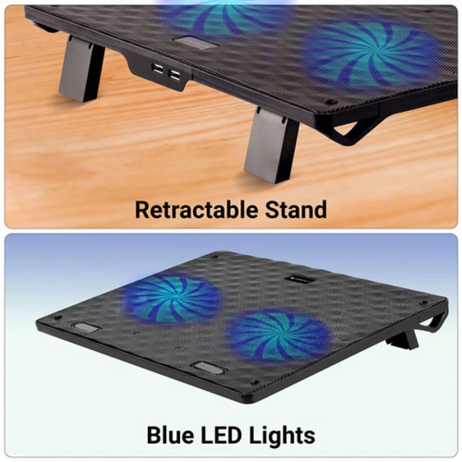ZEB-NC3300 is a laptop cooling pad that comes with dual USB port, dual 120mm fans with blue LED along with a retractable stand. The fans are silent and the build is designed for optimized airflow.